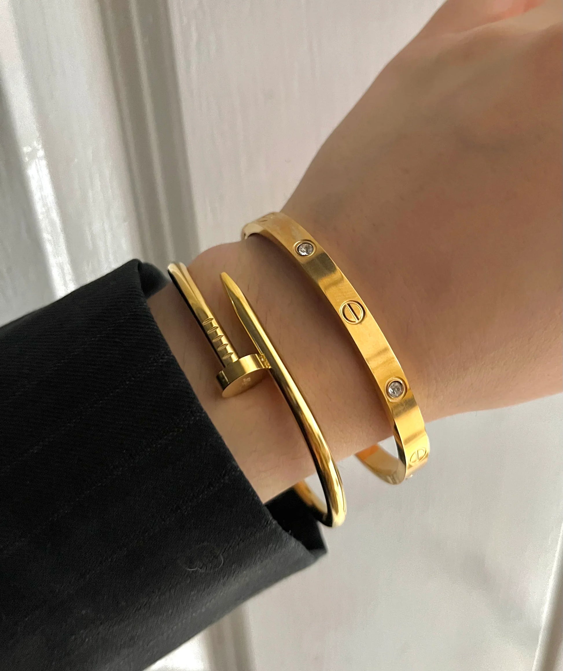 - Elevate your look with this stack that combines the richness of gold with a touch of elegance.