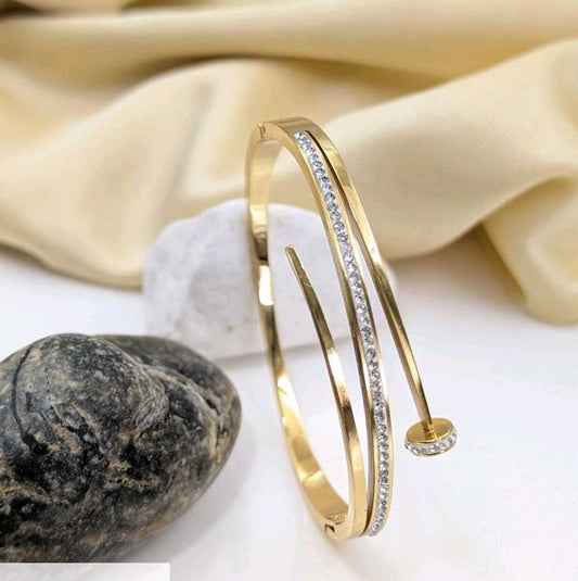 Nail Cubic Zircona 18K Gold Plated Bangle Bracelet
