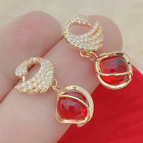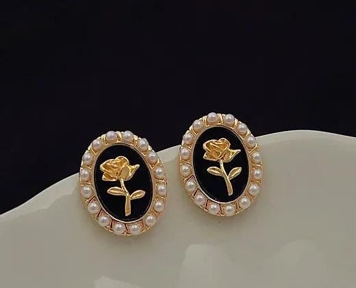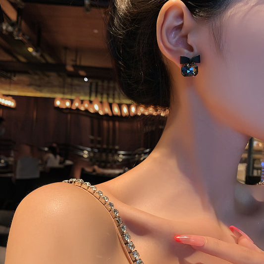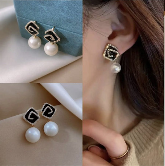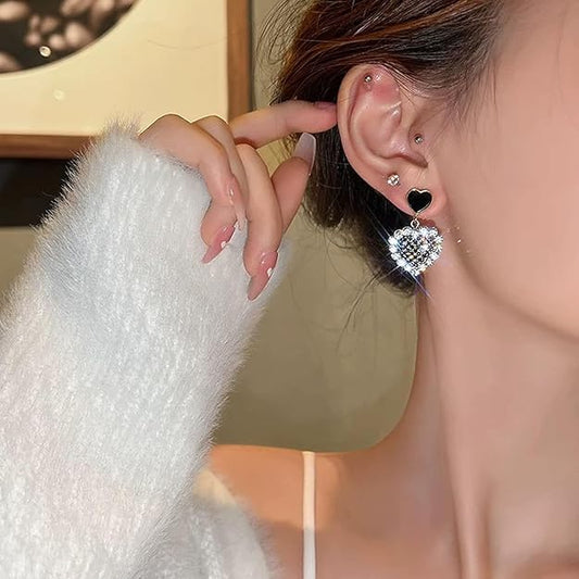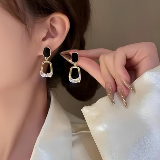 Black-Golden-Geometric Rhinestone Drop Earrings