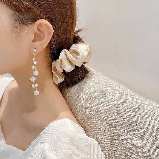 Gold-Plated Pearl-Long-Tassel Drop Earrings