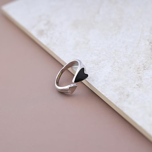Love Knuckle Double Heart Silver Black Adjustable Ring