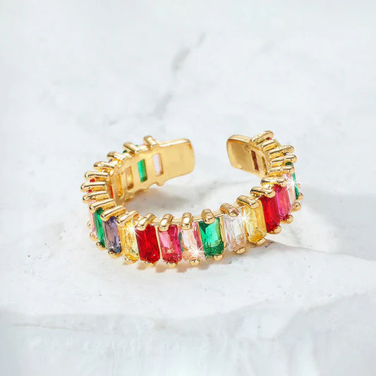 VINTAGE ELEGANCE GOLD PLATED ANTI TARNISH MULTI COLOR RING