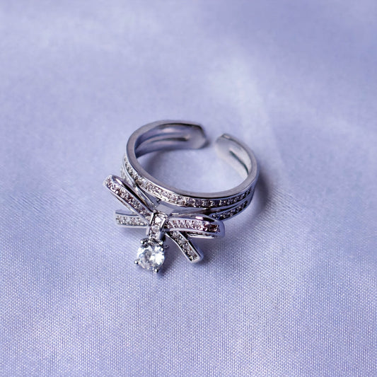 Elegant Bow Silver Rhodium Plated CZ Ring